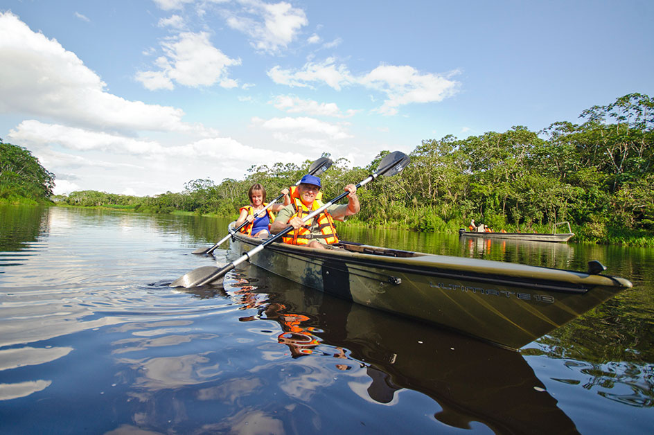 小型ボートでヤナルパ川探索。ドラド川でのカヤック体験やナイトサファリへ。